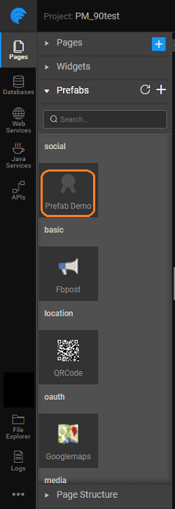 Once the published Prefab is imported it will be available in the Widget Toolbox for drag and drop usage. You can use the refresh icon to check for any modification/updates in the Prefab.