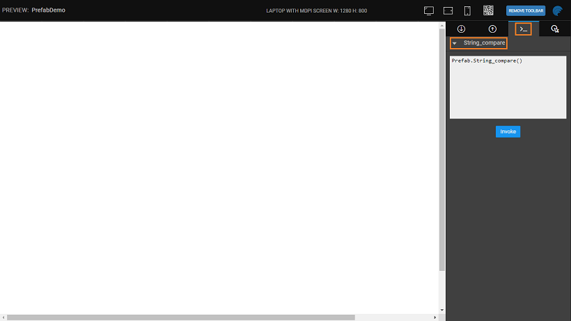 The preview option on Prefab allows you to test your Prefab. The following options are available from the Preview screen: