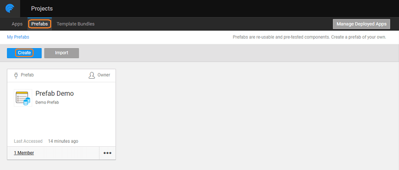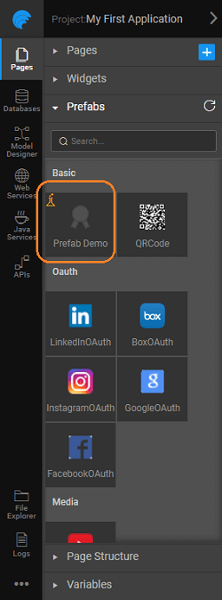 Prefabs are reusable application parts that interact with APIs and data on the web. Prefabs can be embedded and integrated into your applications with ease. You can create your own Prefabs using WaveMaker.