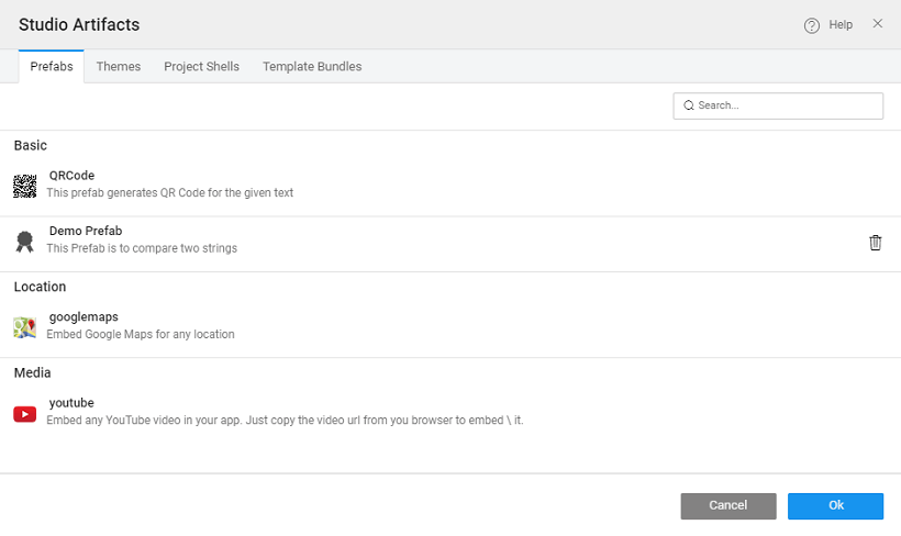 You can delete a custom Prefab from your project using the delete icon in the [Studio Artifacts](http://[supsystic-show-popup id=120]) listing dialog.