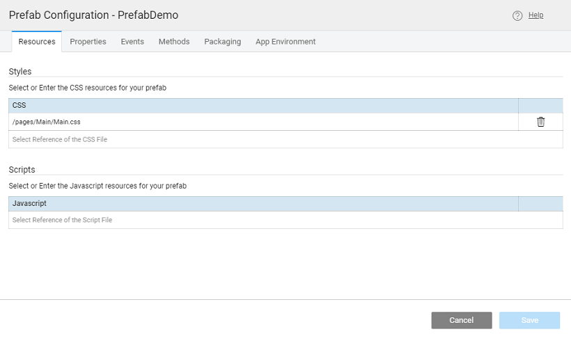Under this tab, you can set the following resource references as needed by your Prefab. Before setting the details, you will need to Import Resource into your Prefab project.