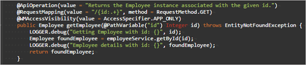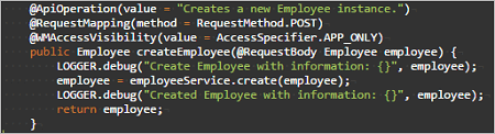 Each of the layers performs its function and delegates the call to the next layer in the chain. For example, after the unmarshaling of the JSON data to the model, and authorization checks, the REST layer delegates the call to the service layer, and more.