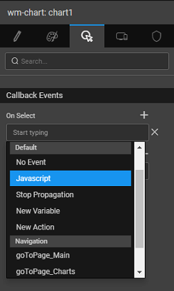 • These data points can be captured and used to bind to a widget for further display or computational purposes from the selected item of the chart widget