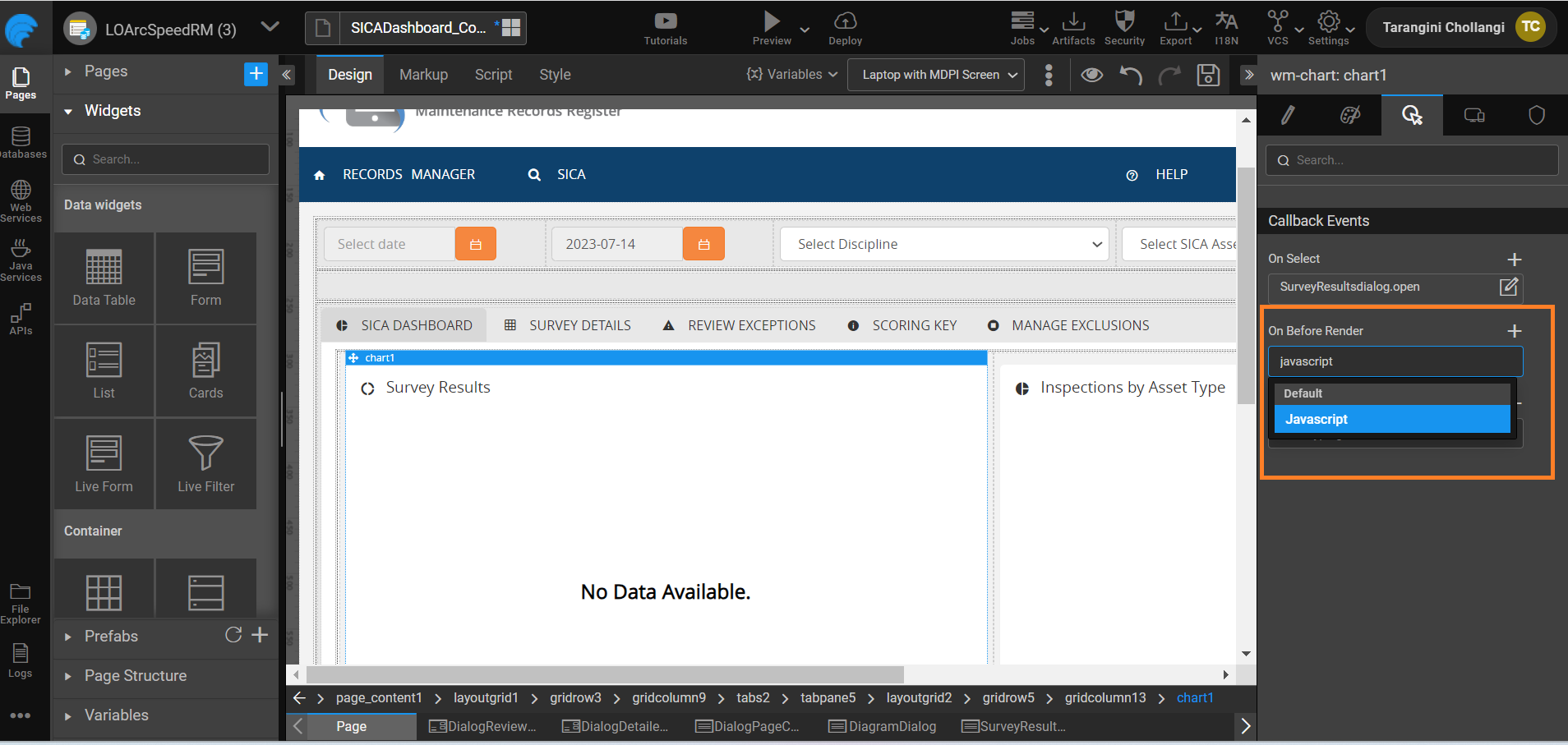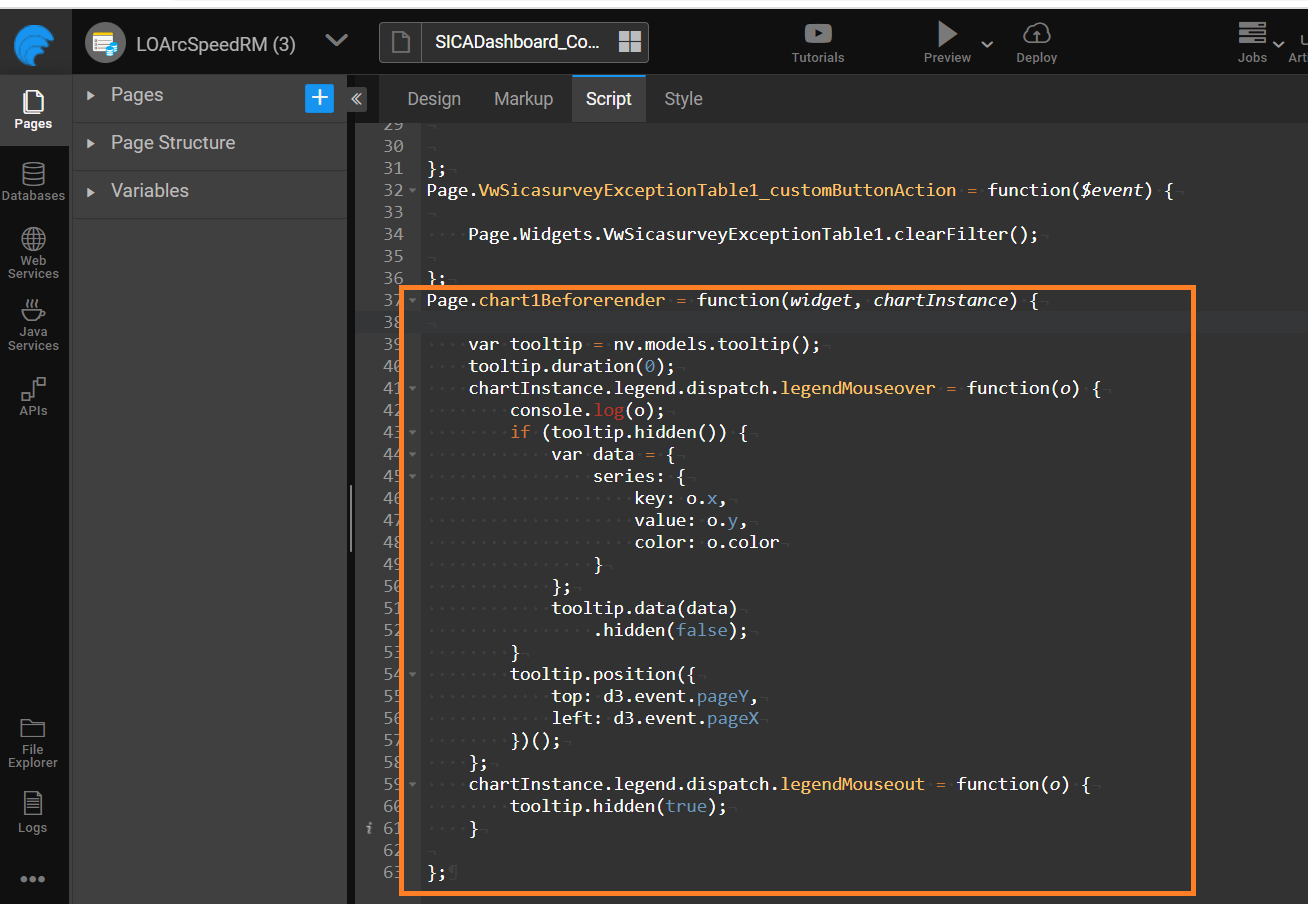 2. Set the Pie Chart's "On Before Render" property to JavaScript.