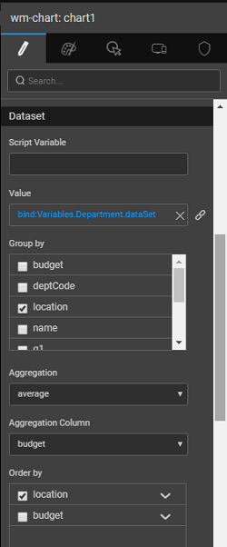 When dealing with charts bound to live variables, you can add additional functionality to these charts. You can order the data, group the data and show the aggregate functions in your chart. The aggregation functions available are average, count, minimum, maximum and sum.