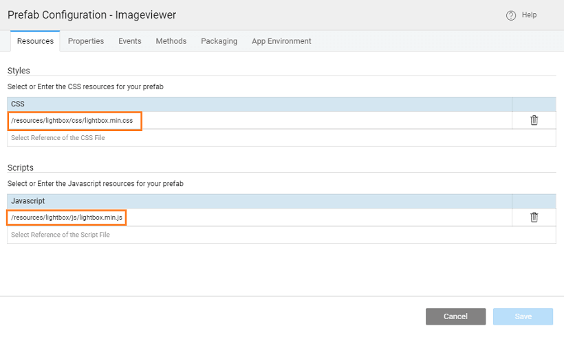 • Scripts: include the js file imported in the above step