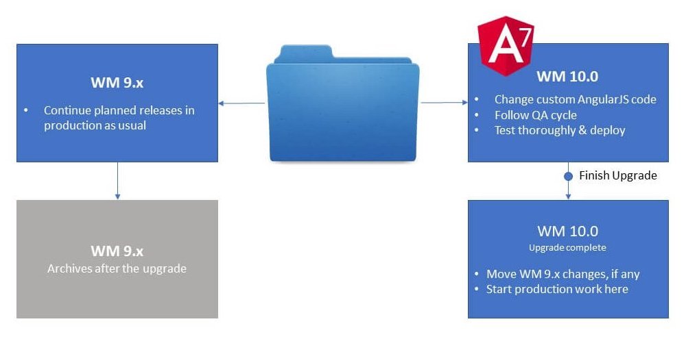 • Even after the WaveMaker 10 release, you can continue to develop and run your application on WM 9.4 while the upgrade to WM 10 is in progress.