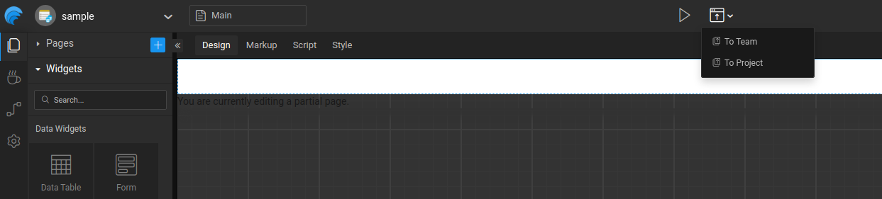 • Publish to Workspace (only for non-enterprise version) - Once published to workspace the Prefab will implicitly be available for use across all projects within the developer's workspace.